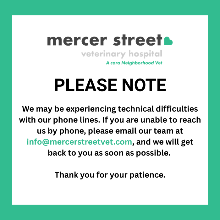 At Mercer Street Veterinary Hospital, we know how much trust it takes to choose care for your pet. Our team is here to make that choice feel easier, with thoughtful recommendations, clear communication, and a genuine focus on your pet’s comfort and well-being.